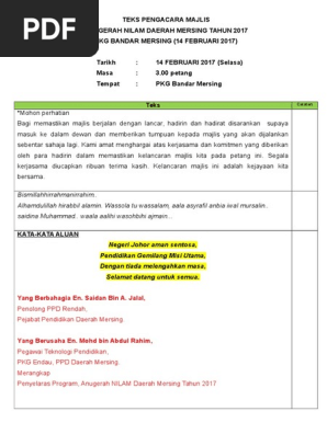 Teks Ucapan Pengacara Majlis Anugerah Tokoh Nilam : Teks pengacara majlis pelancaran program nilam 2013.. Berikut ialah teks ucapan perpisahan saya yang lengkap pada hari tersebut. Teks perasmian mesyuarat agung pibg. Contoh teks pengacara majlis majlis perkahwinan adha & azwan. Mengumumkan ketibaan yang diraikan en. Semoga segala amanat dan ucapan yb itu tadi.